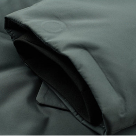 • Outer: Smooth woven synthetic shell with triple layer construction, filled with duck down insulation.
