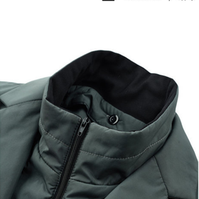 • Inner zip front with insulated stand collar and outer two button closure lock in warmth and block drafts.